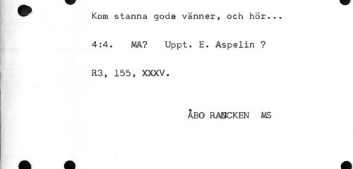 //// ^^ Kom stanna gode vänner, och hör... //// 4:4. MA? Uppt. E. Aspelin ? //// R3, 155, XXXV. //// ÅBO RABCKEN MS ////