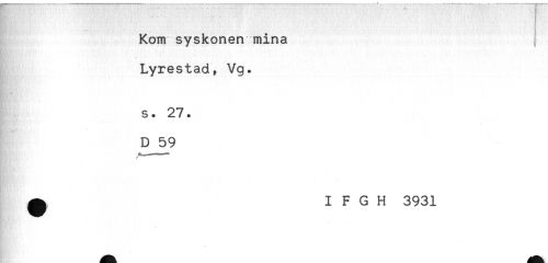 //// Kom syskonen mina //// Lyrestad, Vg. //// s. 27. //// D 59 //// ^ I F G H 3931 ////
