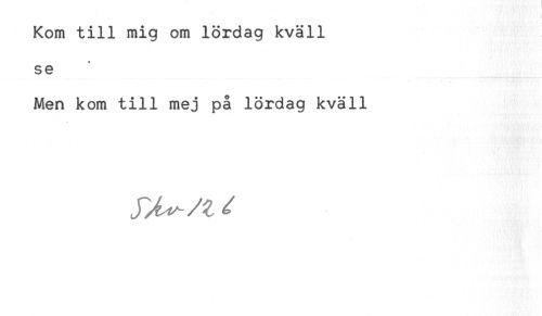 //// ) //// Kom till mig om lördag kväll //// se //// Men kom till mej på lördag kväll ////