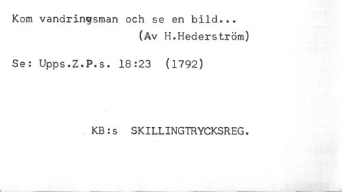 //// Kom vandringsman och se en bild... //// (Av H.Hederström) //// Se: Upps.Z.P.s. 18:23 (1792) //// KB:s SKILLINGTRYCKSREG. ////