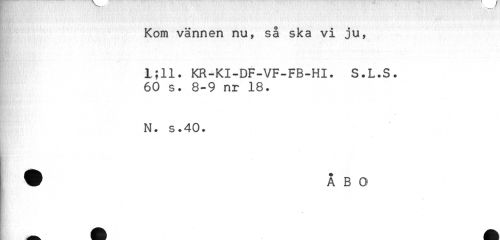 //// Kom vännen nu, så ska vi ju, //// 1;11. KR-KI-DF-VF-FB-HI. S.L.S. //// 60 s. 8-9 nr 18. //// N. s.40. ////
