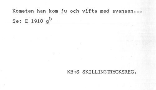 //// Kometen han kom ju och vifta med svansen... //// Se: E 1910 g^ //// KB:S SKILLINGTRYCKSREG. ////