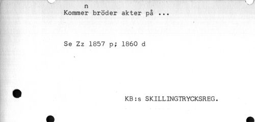 //// Kommer bröder akter på ... //// Se Zz 1857 p; 1860 d //// ^ KB:s SKILLINGTRYCKSREG. //// -t .. $ « .- . < .. ////