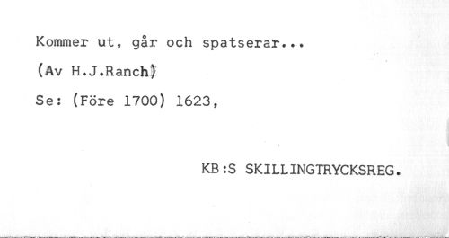 //// Kommer ut, går och spatserar... //// (Av H.J.Ranch) //// Se: (Före 1700) 1623, //// KB:S SKILLINGTRYCKSREG. //// t ////