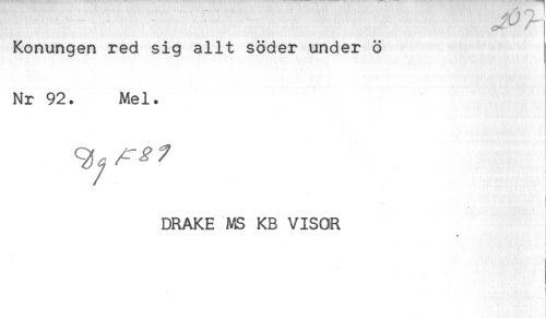 //// ' ' - ^ ^ //// Konungen red sig allt söder under ö //// Nr 92. Mel. //// ! //// I //// DRAKE MS KB VISOR ////