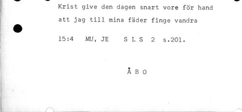 //// ruris^ give aen aagen snart vore tor hand //// att jag till mina fäder finge vandra //// 15:4 MU, JE S L S 2 s.201. //// i //// ! //// ÅBO //// * ////