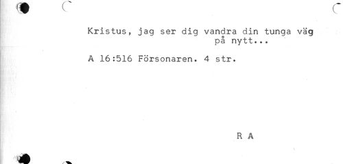 //// Kristus, jag ser dig vandra din tunga väg //// på nytt... //// t //// A 16:516 Försonaren. 4 str. //// R A //// ! ////