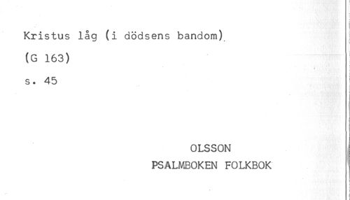//// j //// Kristus låg (i dödsens bandom) //// i //// (G 163) //// : //// s. 45 //// OLSSON j //// PSALMBOKEN FOLKBOK //// < //// ) ////