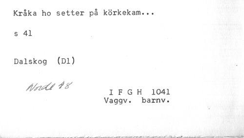 //// Kråka ho setter på körkekam... //// s 41 //// Dalskog (Dl) //// ^^ ^ I F G H 1041 //// Vaggv. bamv. ////