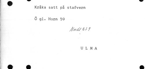 //// Kråka satt på stafvem //// ! //// Ö gl. Horn 59 //// i . * //// U L M A //// i //// § //// K ^ ^ å) ////
