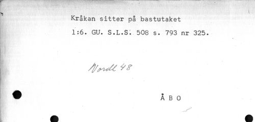//// Kråkan sitter på bastutaket //// 1:6. GU. S.L.S. 508 s. 793 nr 325. //// * //// ' //// . . , , . - //// * * * //// ; //// - ////