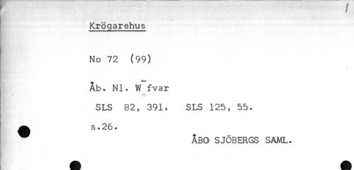 //// ... .... y //// Krögarehus //// - //// No 72 (99) //// ' ' 'W //// Åb. NI. vffvar //// SLS 82, 391. SLS 125, 55. //// ^ s.26. //// ÅBO SJÖBERGS SÄML. //// t- *- . ? //// ! ////
