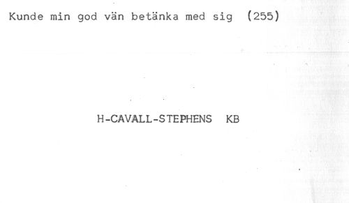 //// Kunde min god vän betänka med sig (255) //// <* //// H-CAVALL-STEPHENS KB ////