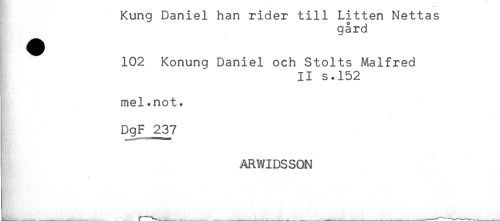 //// Kung Daniel han rider till Litten dettas //// ; gård //// ^ 102 Konung Daniel och Stolts Malfred //// II s.152 //// mel.not. //// * //// DgF 237 //// ARWIDSSON ////