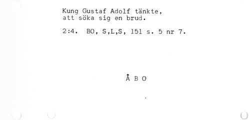 //// Kung Gustaf Adolf tänkte, //// att söka sig en brud. //// 2:4. BO, S,L,S, 151 s. 5 nr 7. //// ÅBO ////