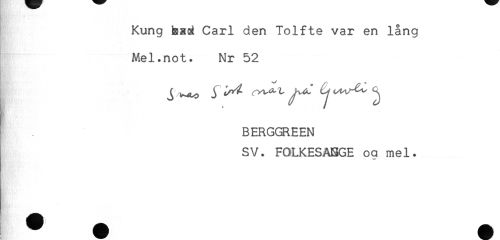 //// Kung bac^ Carl den Tolfte var en lång //// Mel.not. Nr 52 //// BERGGREEN //// SV. FOLKESABGE oa mel. ////