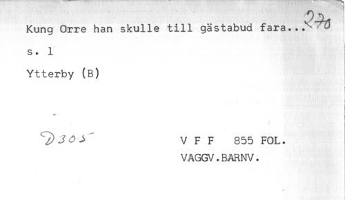 //// Kung Orre han skulle till gästabud fara...^ ^ //// - //// s. 1 //// Ytterby (B) //// ) //// t //// ! //// ' i //// T) ^ " V F F 855 FOL. //// VAGGV.BARNV. //// - ////