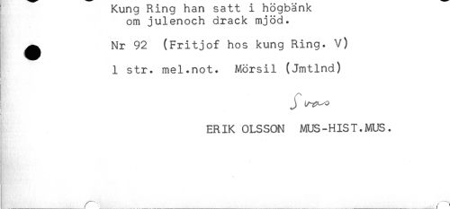 //// om julenoch drack mjöd. //// ^ Nr 92 (Fritjof hos kung Ring. V) //// 1 str. mel.not. Mörsil (Jmtlnd) //// J //// ERIK OLSSON MUS-HIST.MUS. //// ^ * )' ////
