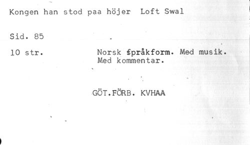 //// Kongen han stod paa höjer Loft Swal ' //// Sid. 85 //// < //// 10 str. Norsk fpråkform. Med musik. //// Med kommentar. //// y * //// GÖT.FÖRB. KVHAÅ //// ) ////