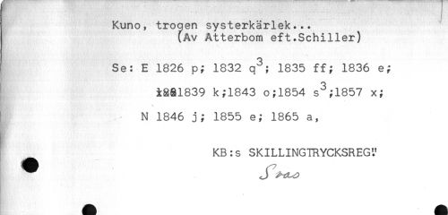//// Kuno, troqen systerkärlek... //// (Av Atterbom eft.Schiller) //// Se: E 1826 p; 1832 q^; 1835 ff; 1836 e; //// i881839 k;1843 o;1854 s^;1857 x; //// N 1846 j; 1855 e; 1865 a, //// KB:s SKILLINGTRYCKSREG^ ////
