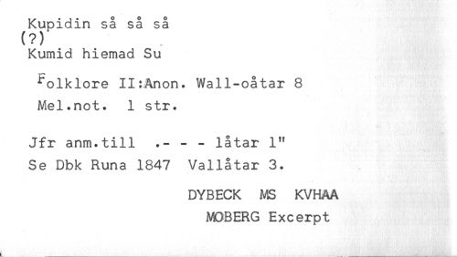 //// Kupidin så så så //// (?) //// Kumid hiemad Su //// ^olklore IlrAnon. Wall-oåtar 8 //// Mel.not. 1 str. //// Jfr anm.till - - låtar 1" //// Se Dbk Runa 1847 Vallåtar 3. //// DYBECK MS KVHAA //// MOBERG Excerpt //// s ...^_ ////