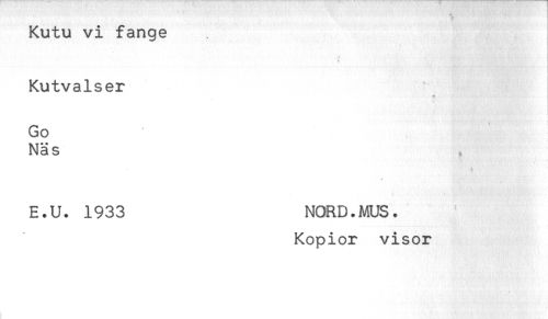 //// Kutu vi fånge //// T //// Kutvalser //// t //// Go ' : //// Näs //// - //// E.U. 1933 NORD. MUS. //// Kopior visor ////