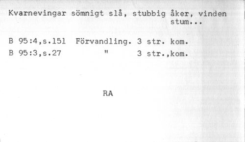 //// Kvarnevingar sömnigt slå, stubbig åker, vinden //// stum... //// B 95:4,s.151 Förvandling. 3 str. kom. //// B 95:3,s.27 " 3 str.,kom. //// i //// i //// < //// RA ////
