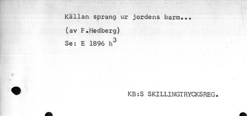 //// Källan sprang ur jordens barm... //// (av F.Hedberg) //// Se: E 1896 h^ //// < ////