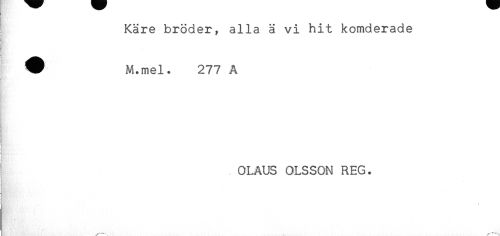 //// Käre bröder, alla ä vi hit komderade //// < * //// ! //// M}. //// ^ M.mel. 277 A //// < //// OLAUS OLSSON REG. //// { //// HVA- / - - ////