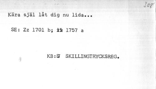 //// Kära själ låt dig nu lida... //// < //// SE: Zz 1701 b; 1757 a //// * //// , KB: ST SKILLINGTRYCKSREG. ////
