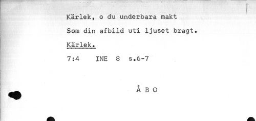 //// ...... ! //// Kärlek, o du underbara makt //// Som din afbild uti ljuset bragt. //// Kärlek. //// 7:4 INE 8 s.6-7 //// - ÅBO ////