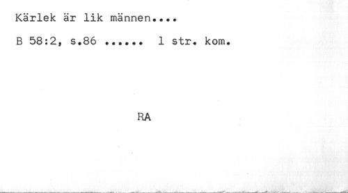 //// Kärlek är lik männen.... //// B 58:2, s.86...... 1 str. kom. //// RA //// * ////
