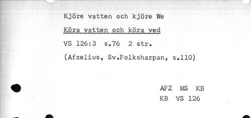 //// Kjöre vatten och kjöre We //// Köra vatten och köra ved //// VS 126:3 s.76 2 str. //// (Afzelius, Sv.Folksharpan, s.110) //// AFZ MS KB //// ) ^ KB VS 126 ////