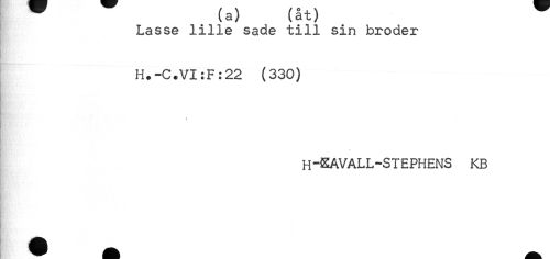 //// Lasse lille sade till sin broder //// H.-C.VI:F:22 (330) //// H-SAVALL-STEPHENS KB //// . ////