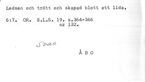 //// Ledsen och trött och skapad blott att lida, //// 6:7. OR. S.L.S. 19. s.364-366 //// nr 132. //// ÅBO ////