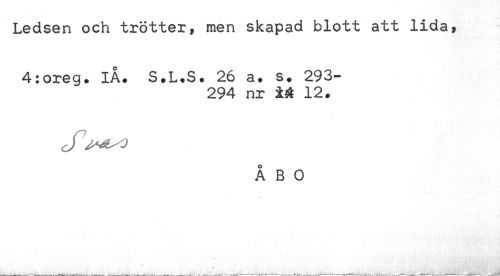 //// Ledsen och trötter, men skapad blott att lida, //// 4:oreg. IÅ. S.L.S. 26 a. s. 293- //// 294 nr 12. //// ÅBO //// : * . ,' ' . ////