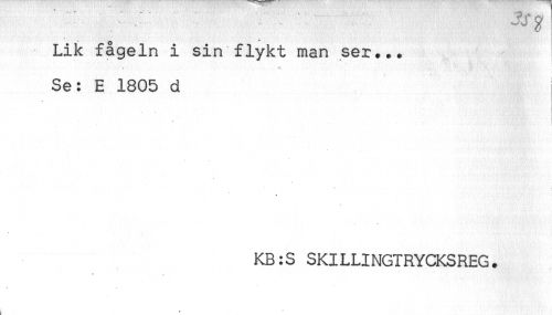 //// Lik fågeln i sin flykt man ser... //// Se: E 1805 d //// KB:S SKILLINGTRYCKSREG. ////