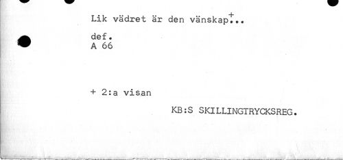 //// Lik vädret är den vänskapt.. //// + 2:a visan //// KB:S SKILLINGTRYCKSREG. ////