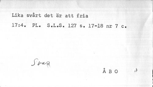 //// * //// Lika svårt det är att fria //// 17:4. PL. S.L.S. 127 s. 17-18 nr 7 c. //// ÅBO > I //// ) ////