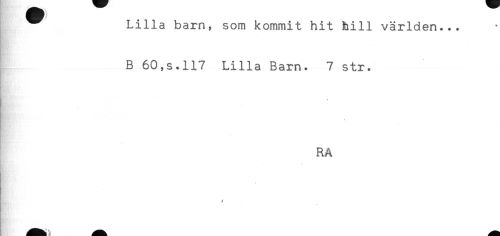 //// ^ Lilla barn, som kommit hit hill världen... //// B 60,s.117 Lilla Barn. 7 str. //// RA //// * ////