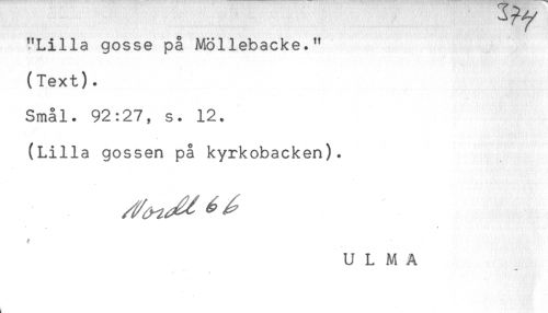 //// "Lilla gosse på Möllebacke." //// (Text). //// Smål. 92:27, s. 12. //// (Lilla gossen på kyrkobacken). //// U L M A ////
