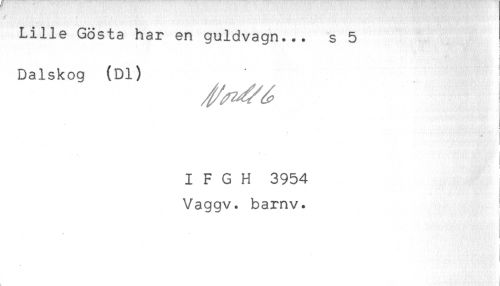 //// Lille Gösta har en guldvagn... s 5 //// Dalskog (Dl) //// I F G H 3954 //// Vaggv. barnv. ////