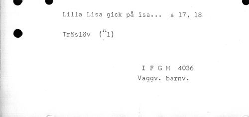 //// Lilla Lisa gick på isa... s 17, 18 //// ^ Träslöv (^l) //// t //// < //// ! //// < //// ! I F G H 4036 //// Vaggv. barnv. //// t ////