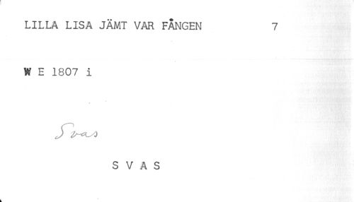 //// LILLA LISA JÄMT VAR FÅNGEN 7 //// W E 1807 i //// S V A S ////