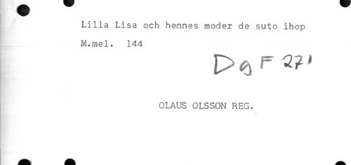 //// Lilla Lisa och hennes moder de suto ihop //// M.mel. 144 //// OLAUS OLSSON REG. ////