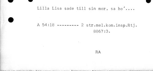 //// Lilla Lisa sade till sin mor, sa ho'.... //// A 54:18 ---- 2 str.mel.kom.insp.Rtj. //// 8867:3. //// RA ////