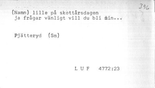//// (Namn) lille på skottårsdagen //// ja frågar vänligt vill du bli min... = //// r //// t //// t //// * //// Pjätteryd (Sm) //// L U F 4772:23 //// < //// t //// ! //// i ////