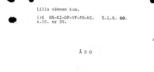 //// Lilla vännen kom, //// ^ 1:6 KR-KI-DF-VF-FB-HI. 3.L.S. 60. //// ^^ s.18. nr 39. //// C //// ÅBO ////