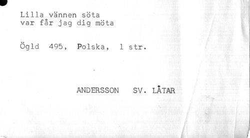 //// Lilla vännen söta //// var får jag dig möta //// Ögld 495, Polska, 1 str. //// * //// ANDERSSON SV. LÅTAR //// ,' J ////
