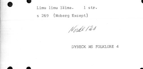 //// Limu limu läima. 1 str. //// i s 269 (Moberg Except) //// - //// DYBECK MS FOLKLORE 4 ////